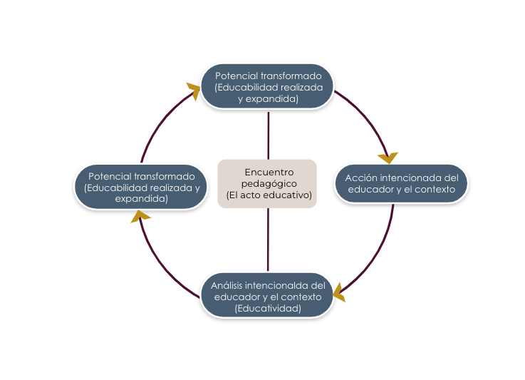 Nota. El diagrama ilustra que la educabilidad no es una cantidad fija, sino un potencial dinámico que es activado y transformado por la educatividad dentro del encuentro pedagógico, generando un nuevo estado de educabilidad en un proceso continuo. Fuente: Elaboración propia.